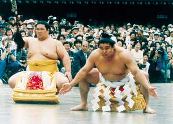 Турниры сумо отличает особый традиционный ритуал. Перед началом соревнований проходит парад участников. Они поочередно выходят на ринг. В заключение парада на помост поднимается великий чемпион - ёкодзуна - в сопровождении главного судьи и двух сильнейших борцов, один из которых несет церемониальный меч.
